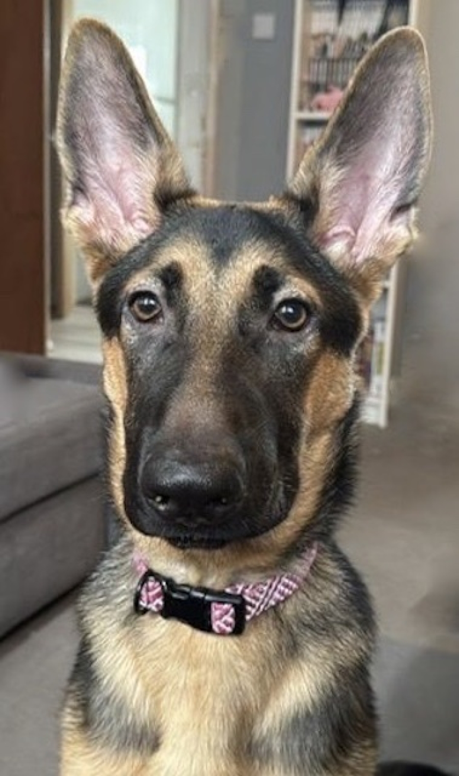 Pomni is a confused youngster who needs guidance on how to behave in relation to barking at visitors to the home and other dogs on the walk. Consistency in her training should help her navigate through her learning and developmental stage.